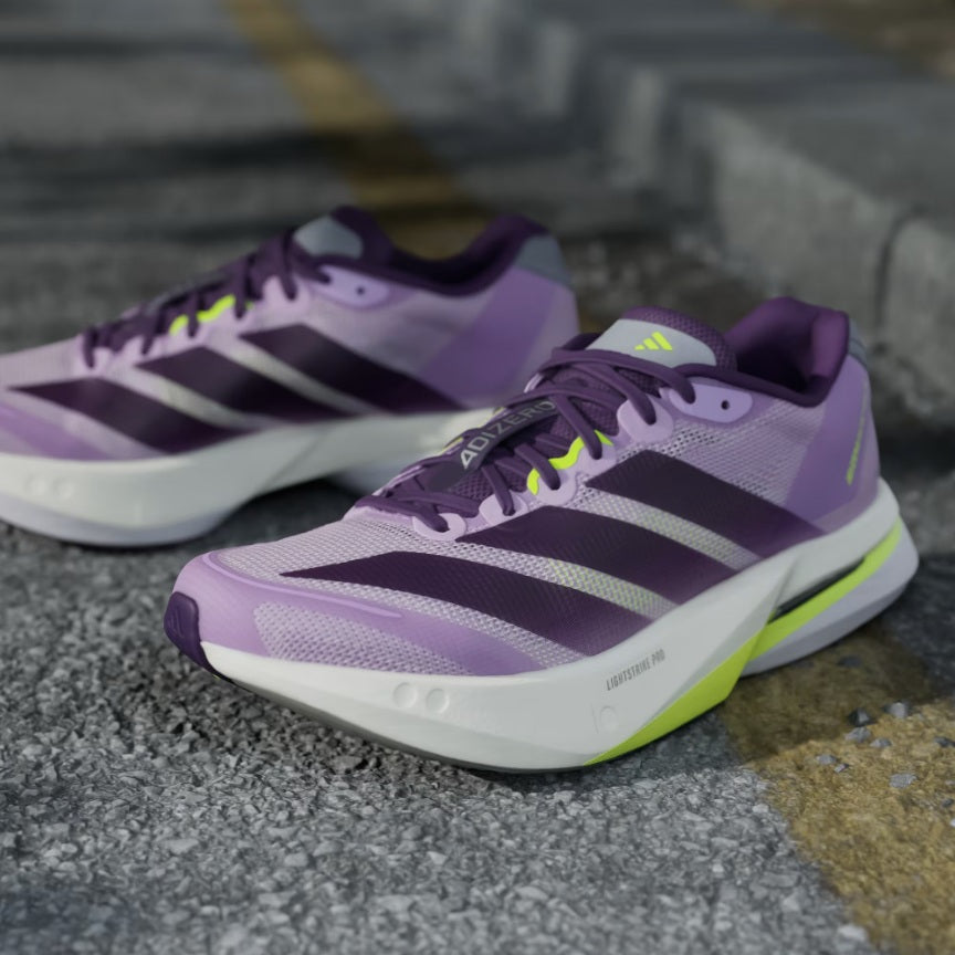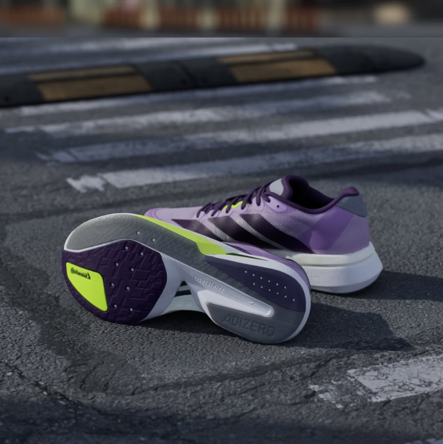 Tune into your fastest self with the lightweight, responsive performance of the adidas Adizero Boston 13 running shoes. Designed for the intense training sessions leading up to race day, they let you comfortably push the pace with a breathable mesh upper and secure midfoot lockdown. The Lightstrike and Lightstrike Pro midsole with ENERGYRODS provides snappy return kilometre after kilometre. A Lighttraxion outsole adds all-purpose traction while Continental™ Rubber at the toe adds no-slip toe-off.
