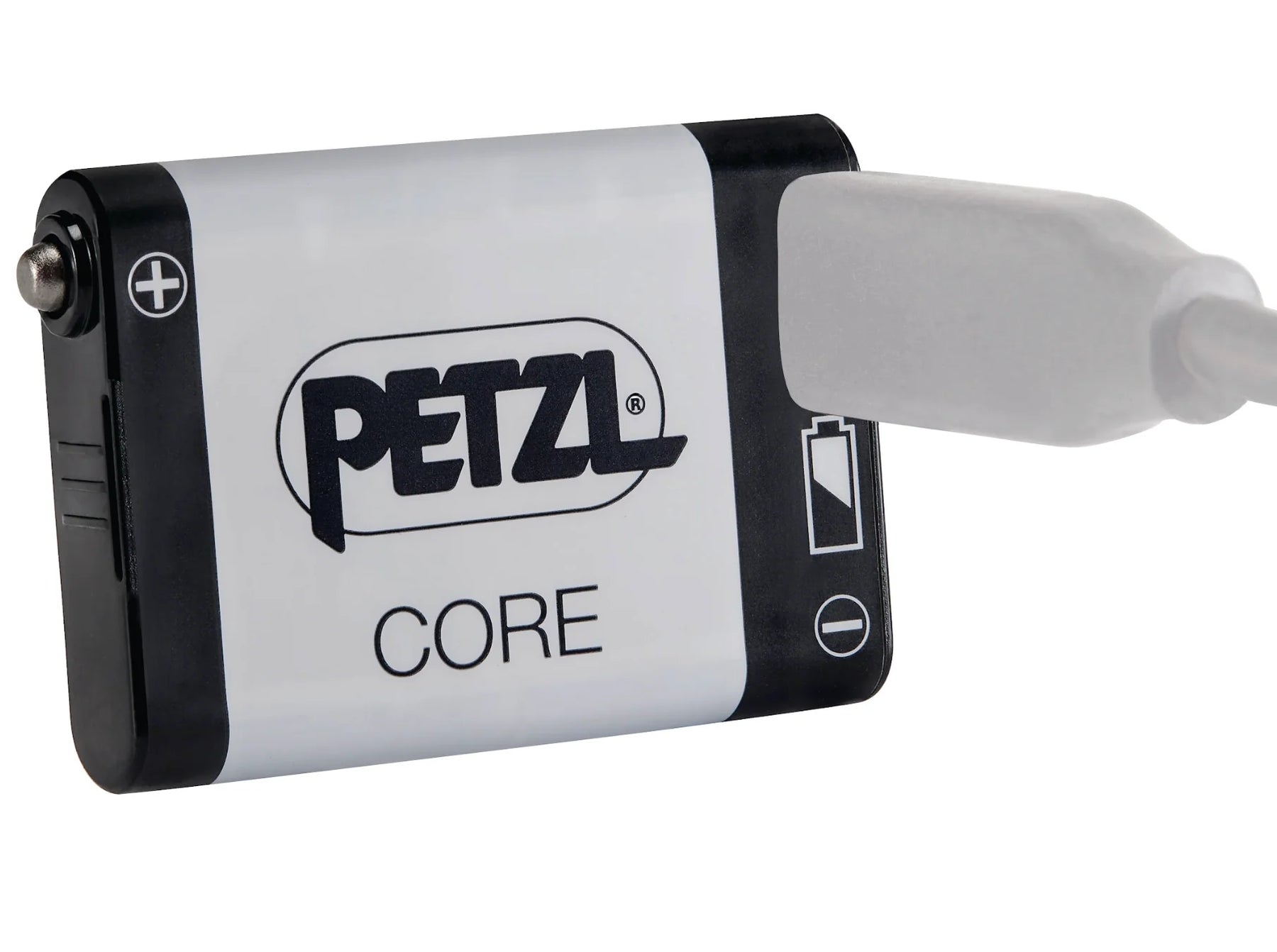 Rechargeable battery for Petzl headlamps featuring the HYBRID CONCEPT design: the TIKKID, TIKKINA, TIKKA, ACTIK, ARIA, and IKO. Its high-capacity lithium-ion 1250 mAh provides excellent lighting performance, even at low temperatures. It recharges directly with the integrated USB-C port. Ideal for frequent to intensive use, the CORE rechargeable battery is an economic, sustainable, and environmentally responsible solution.